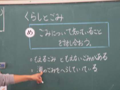 1組の社会です。ごみについて知っていることについて話し合っています。