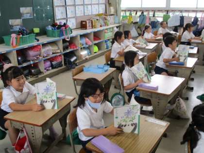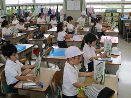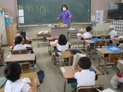 2組の国語です。のばす音(長音)の学習です。楽しそうに読んでいます。