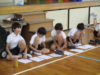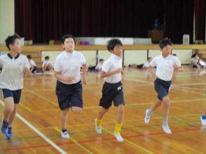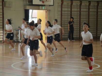 1組が体育館でシャトルランの測定をしていました。持久力が試されます。