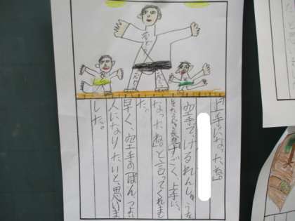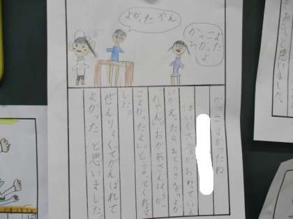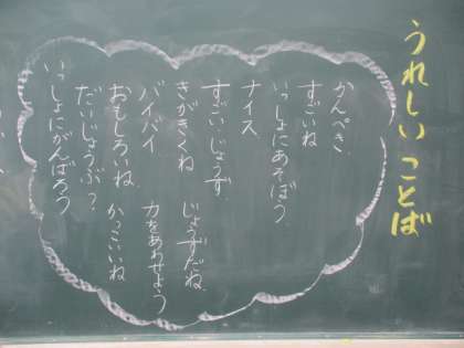 2年生の国語「うれしいことば」の学習です。自分がもらった「うれしいことば」についてくわしく日記に書いています。国語の学習だけではなく、教室が温かな言葉であふれてとても気持ちがいいですね。安心できるクラスづくりににもつながる学習です。