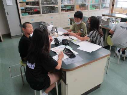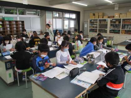 3組の理科です。「ヒトがたんじょうするまで」の単元のまとめをしていました。調べたり、友だちと話したりしてプリントにまとめていきます。