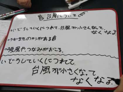 3組の理科「台風と気象情報」の学習です。台風について知っていることを発表します。