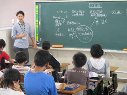 3組の道徳です。いじめについて考え、クラスのみんなで話し合っていました。