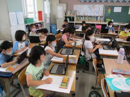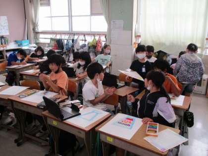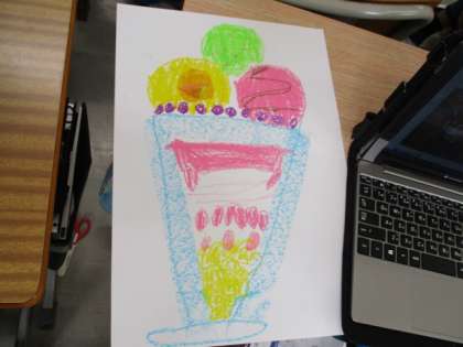 3組の図工です。自分だけのお気に入りパフェをつくっています。