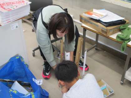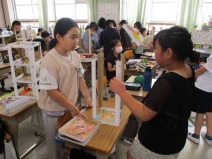 2組の図工「ころころがーれ」の制作です。ビー玉がうまく転がるように工夫しています。