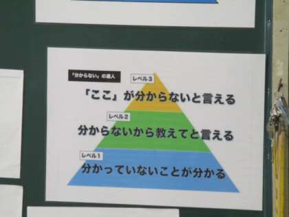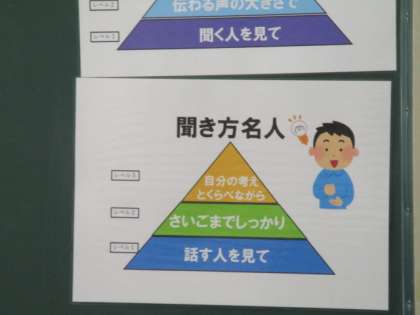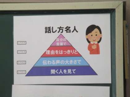3年生の板書で見つけました。聞き方、話し方の「名人」、わからないの「達人」を示しています。子どもたちに何を大切にしてほしいのか、子どもたちが何を大切にすればよりよい学習ができるのかを明確にすることはとても大切なことです。