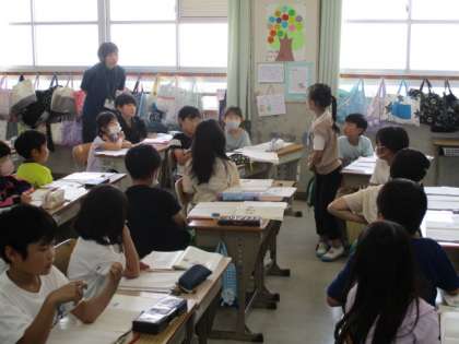 3年生の授業のようすです。先生は黒板の前にいるものだと思われがちですが、そうではありません。では、なぜこんなところに立っているのでしょうか?