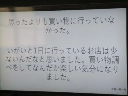 1組の社会です。「買い物調べ」をして、気づいたことを交流していました。