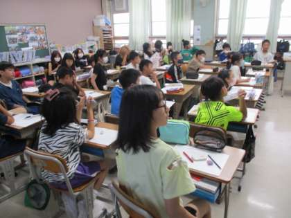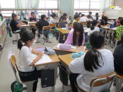 3組の算数です。分数のひき算の学習をしています。子どもたちが先生になっていますね。