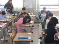 2組の音楽です。「小さな約束」のリコーダー奏を練習しているのですが、グループでいくつかの場を回りながら練習しています。先生の前の場では、先生に聞いてもらいます。みんなで一斉に練習するより、相手意識と場の設定でやる気が増しますね。