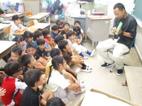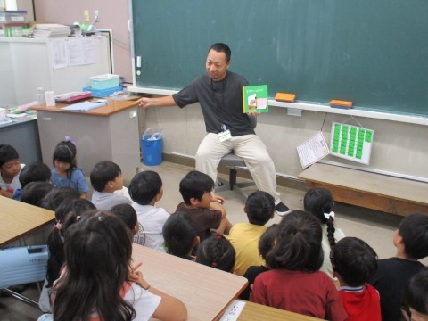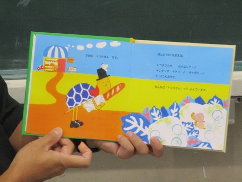 1組の朝の時間です。先生が絵本の読み聞かせをしてくれました。こどもたちは絵本の世界に夢中です。