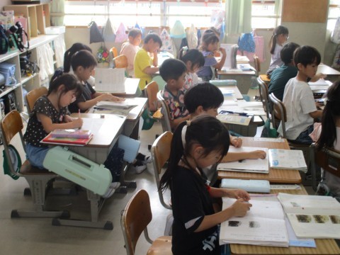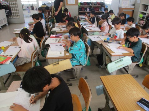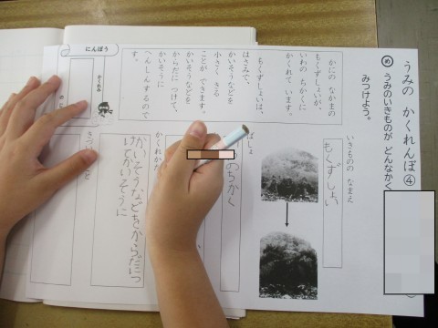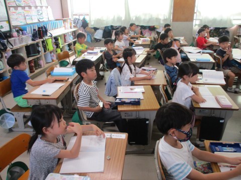 1組の国語「うみのかくれんぼ」の学習です。海の生き物がどんなかくれんぼをしているのかを読み取ります。みんなひとりで文章に向き合って考えていましたよ。すごい!