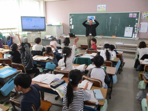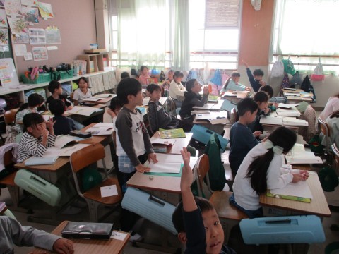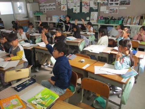 1組の国語「くじらぐも」の学習です。くじらぐもはどれぐらいの大きさなのかを想像していました。