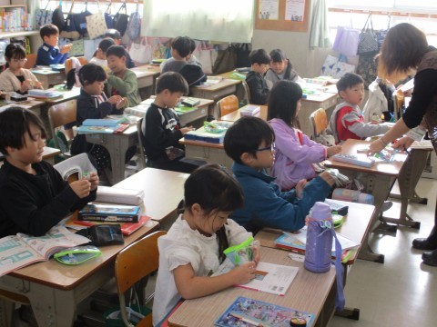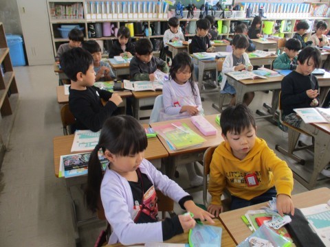 1組の国語「うみのかくれんぼ」の学習です。海の生き物がどんなかくれんぼをしているのかを読み取ります。みんなひとりで文章に向き合って考えていましたよ。すごい!