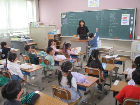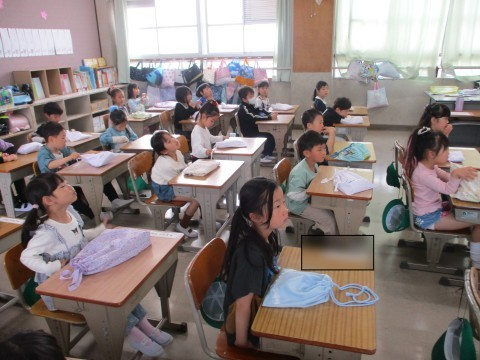 1年生のようすです。朝の用意の仕方や学校のさまざまなルールなど,覚えることがたくさんありますね。