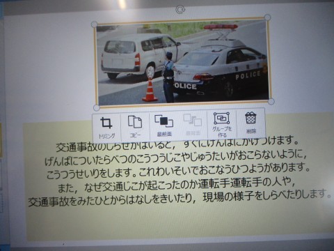 2組の社会です。警察の仕事について調べて,資料にまとめていました。