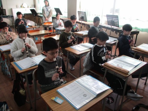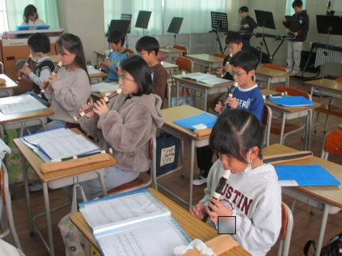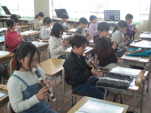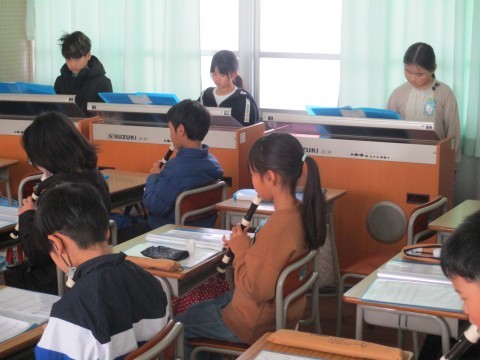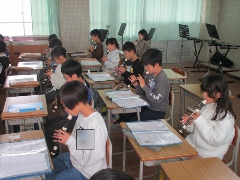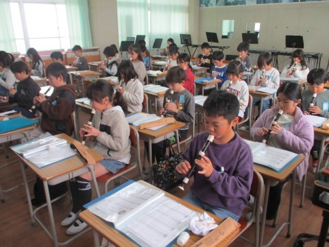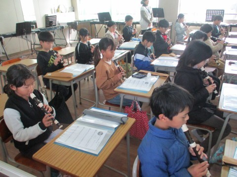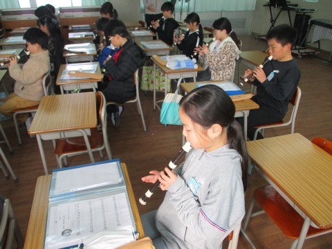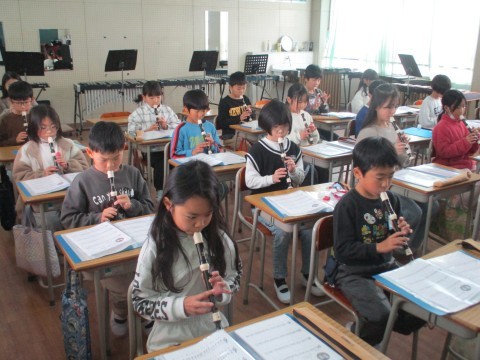 1組の音楽です。先生たちを招いて,リコーダー奏と合奏を聞かせてくれました。4月に初めてリコーダーを手にしたとは思えないほど,美しい音色でしたよ。