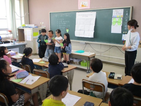 3年生のようすです。教科書を配ったり,自己紹介をしたりしていました。