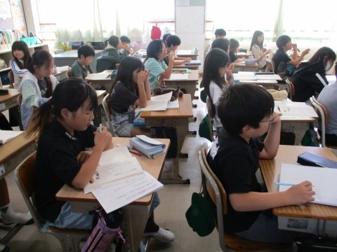 3組の総合的な学習の時間です。環境をテーマに学習を進めています。今日は、自分が選んだ環境問題について調べ、まとめていました。