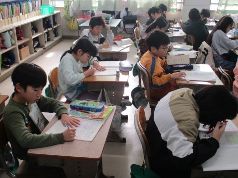 1組では,こどもたちが本の世界に入り込んでいます!みんな,自分の大好きな世界で旅を楽しんでいるのでしょうね。
