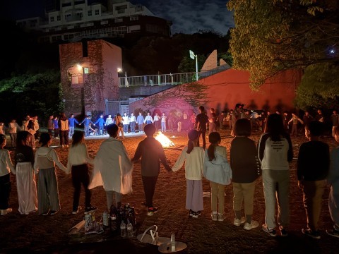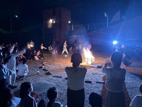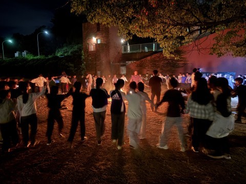 マイムマイムやゲーム、出し物をして盛り上がっています。