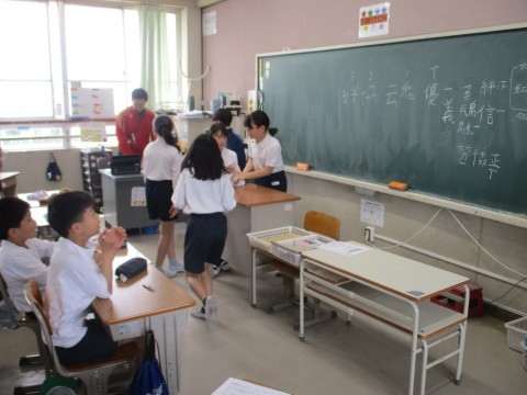 2組の外国語です。英語で「なんでもバスケット」をして遊んでいます。楽しみながら学習することで,1年間の外国語の授業への期待は高まったでしょうね。