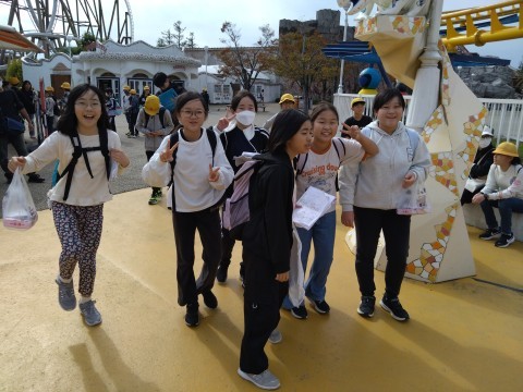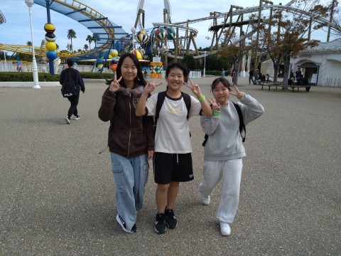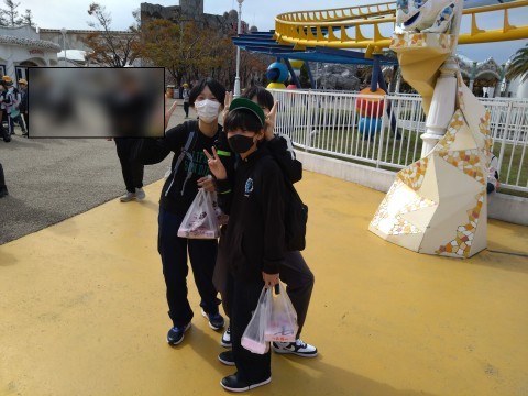 おはようございます!修学旅行2日目です。今日はお天気もよく、暖かい1日になりそうです。絶好の遊園地日和ですよ。