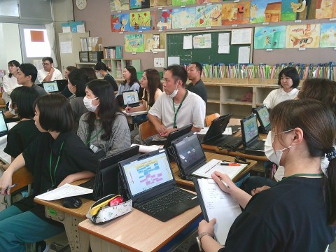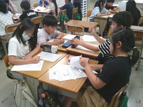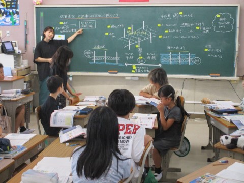 先生は、こどもたちの意見を引き出し、こどもたちの言葉で互いの説明を補いあったり、考えの整理・要約をしたり、合意形成を図ったりとファシリテーターの役割を果たしています。こどもが自ら学びを進めていけるように、先を読みながら支援しているのですね。