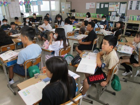 3年生の総合的な学習の時間です。3年生は,1学期から「登南は,だれにとっても過ごしやすい町なのか?」という問いをもって学びを進めてきました。1学期はユニバーサルデザインについて学び,2学期からは体の不自由な方々の立場に立って疑似体験をしたり,調べ学習をしたりしました。今日は,調べたことを伝え合い,次の課題を見つけることがめあてです。こどもたちが主体的に学び合う姿がたくさん見られました。