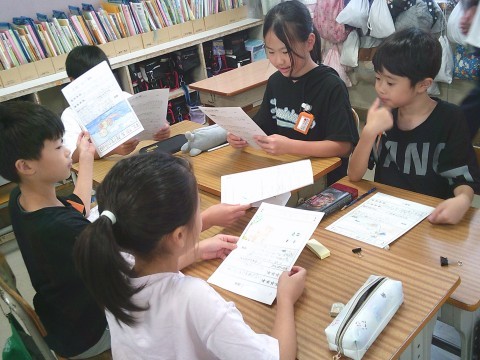 4年生で公開授業を行いました。どのクラスでも,自分で調べた環境問題について,カードを見せながら前向きに友だちに伝えていました。自分でもできそうなことを考えながら,次の課題を考えていきます。授業後は,討議会で授業の振り返りを行いました。