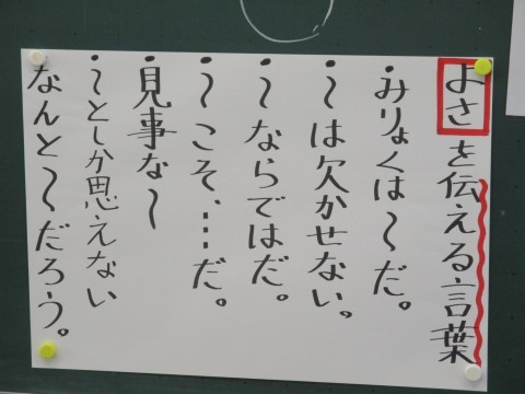 この学習では,板書に書かれているように,これまで学んだ構成や表現の工夫について振り返り,自分が伝えたいことに応じてそれらを活用する力を育てています。学んだことをそのときだけのものにせず,必要なときに必要なものを選択して「使う」ことができたとき,本当の力となります。