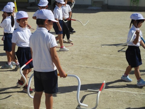 先生が決めてしまって,全員が同じコースで行う方が簡単ですが,遊びの場やルールづくりからこどもたちが決めていくことで単なる運動が「思考・判断」を伴うものに変わっていきますね。何より,こどもたちの発想は必ず大人を凌駕するものです。