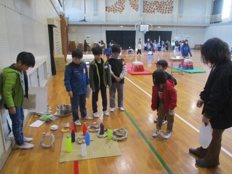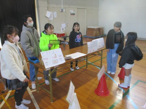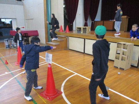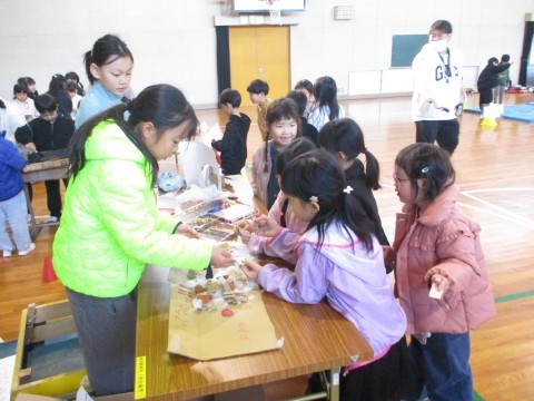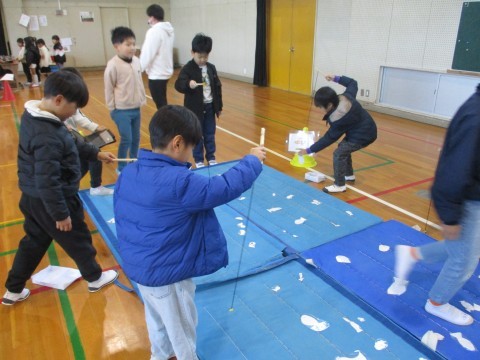 1時間目の特活の時間に,4年生が1年生を招待する,とみ活を行っていました。体育館の中には,楽しそうなお店がずらり。魚釣りやまとあて,わなげ,アスレチック,クッキー屋さん,クレープ屋さん,やきそば屋さんがありました。どのお店も1年生を楽しませようと子どもたちならではの工夫が凝らされていました。