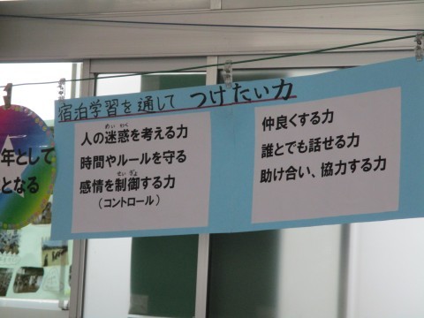 5年生の教室で見つけました。宿泊学習の準備,当日を通してつけたい力を明確にし,共有しています。行事は当日「楽しかった」で終わってはあまりにももったいないですよね。すべての過程を通して,こどもたちが課題意識をもって取り組み,成長する機会であってほしいものです。