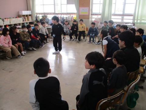 放課後,プロコーチの原田将嗣さんに来ていただき,なかまづくり研修を行いました。これまで各学年で取り組んできたことをふりかえり,原田さんにたくさんご助言をいただきました。明日からの取り組みに活かしていきたいと思います。