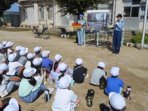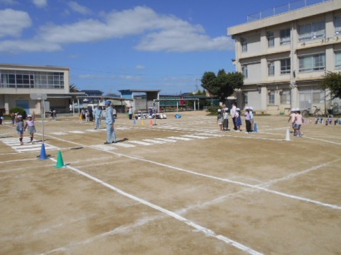 交通安全教室がありました。1年生は,安全な歩行の仕方を学びました。