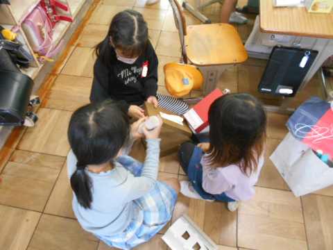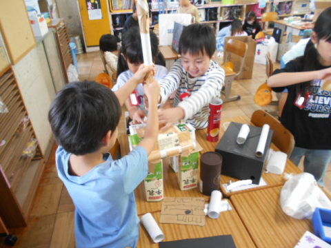 今日は,いろいろなものを作ってみました。タワーや,電車など,友達と協力しながら作っていました。