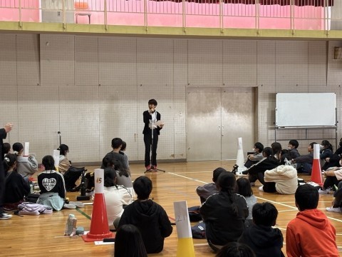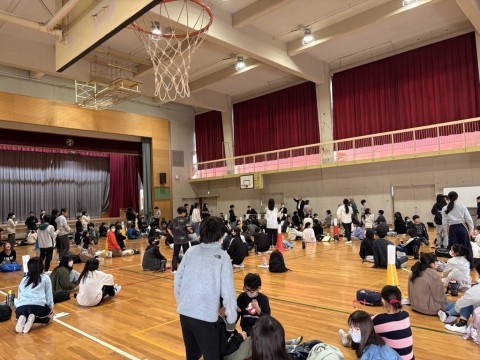 登美丘東小学校と野田小学校の6年生が合同でにんげん学習交流会を開きました。