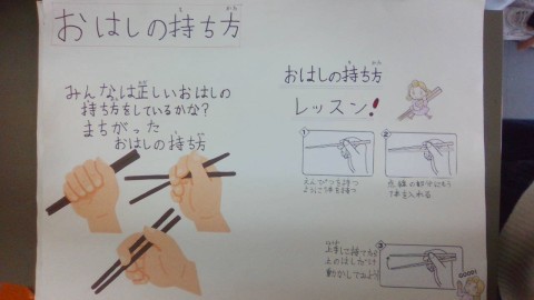 給食委員会から,給食のマナーとお箸の持ち方について話がありました。正しいお箸の持ち方,そして,感謝の気持ちをもって正しく「いただきます」「ごちそうさまでした」をしていきたいですね。