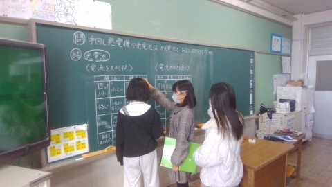 手回し発電機や光電池を使った実験結果をまとめ,