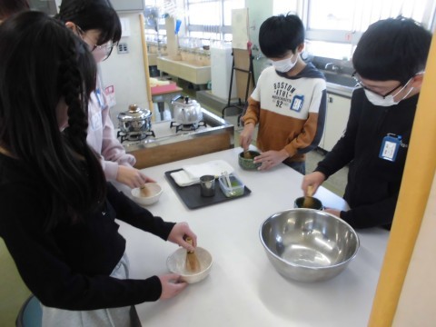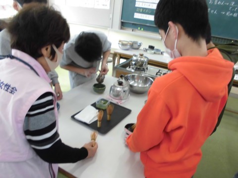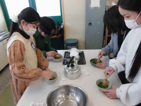 自分たちで作った抹茶茶碗を使ってお茶を点てました。