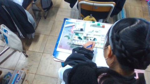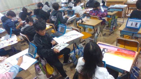 参考にしている作品を見ながら熱心に取り組んでいます。