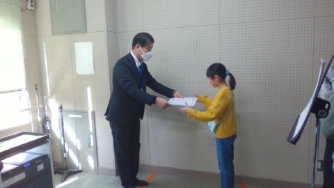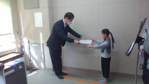 堺っ子書道展の表彰を行いました。受賞した皆さん,おめでとうございます。