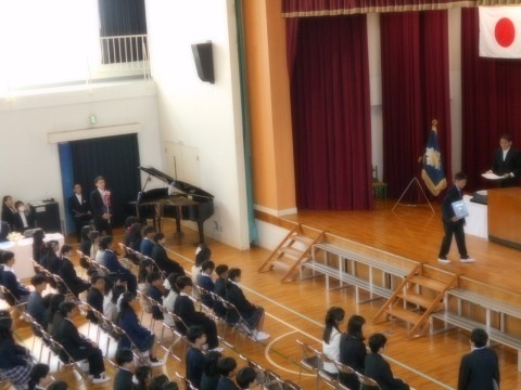何度も何度も練習した証書授与。さすが6年生。緊張しながらも担任の先生の呼びかけにしっかりと返事をする姿は6年間の成長を感じました。