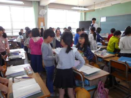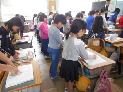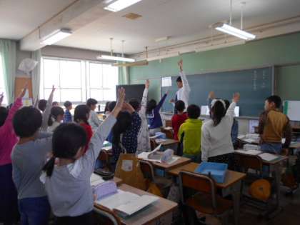 きつつきはどんなふうに「コーン」と鳴いたのか,文章から探します。叙述をもとに,ペアで鳴き声を表現しています。