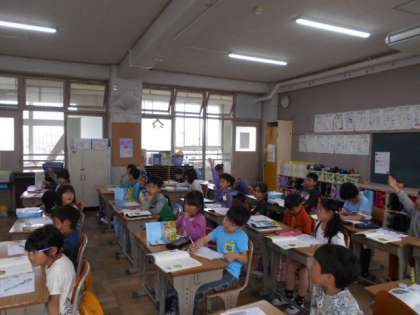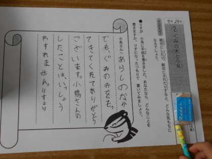 親切にされた時,したときはどんな気持ちがするかな。お話を読んでみんなで話し合いをします。