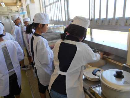 ゆで野菜の調理実習です。野菜を切ったり,ゆでたり,グループで協力して作りました。みんなでおいしく食べた後は,片付もがんばります。