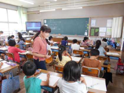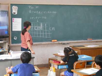 1cmの大きさと書き方について学習しています。「cm」うまくかけるかな。