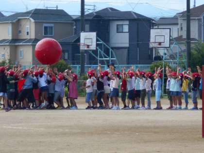 児童朝会 大玉送り