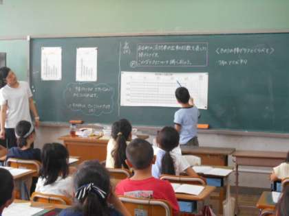 3年 算数 表と棒グラフ 公開日 2019/06/26 更新日 2019/06/26 3年生 消防車の出動回数を表した棒グラフの学習です。昨日の棒グラフと,どこが違うのかを話し合います。横向きになっていることや,値がめもりの真ん中のものがあるなどの意見が出ています。